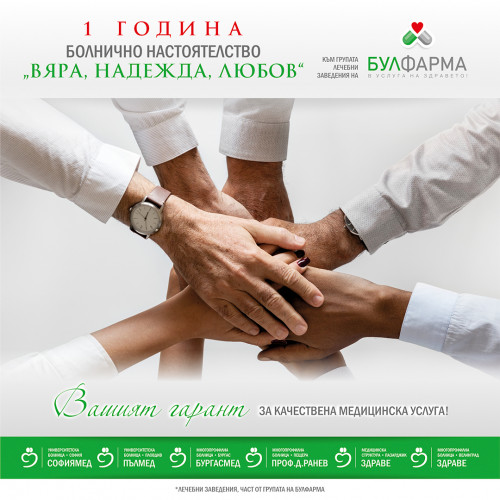 Болничното настоятелство към веригата лечебни заведения на „Булфарма“ – „Вяра, Надежда, Любов“ отбелязва 1 година от своето учредяване. Настоятелството, основано на 16-ти юли бе създадено като независим посредник между пациентите и всяко лечебно заведение от групата и пациентите и държавата, като насърчава инициативи в областта на здравеопазването за по-добро задоволяване на обществените потребности от качествени медицински услуги. Неговата дейност е гарант за пациента за качествена медицинска услуга при спазване на всички стандарти за добра медицинска практика.