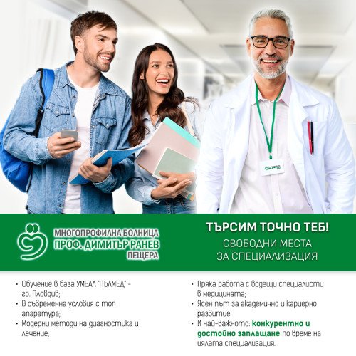 Групата болници на "Булфарма", част от която e и МБАЛ "Проф.Д.Ранев" те канят да станеш част от техния екип от специализанти,
